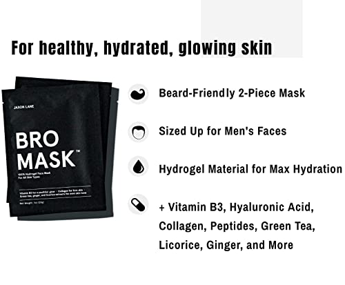 BRO MASK: Korean Face Mask for Men | 2 Pc. Hydrating Anti Aging Sheet Masks Contains Vitamin C, Vitamin E, Hyaluronic Acid, Hydrolyzed Collagen for Face Care & Acne Treatment by Jaxon Lane (4 Pack)