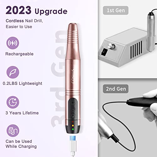 COSLUS Cordless Nail Drill Electric File: Professional for Acrylic Gel Dip Powder Nails Portable Nail Drill Machine Kit for Manicure Pedicure Nail Set with Everything Rechargeable Lightweight