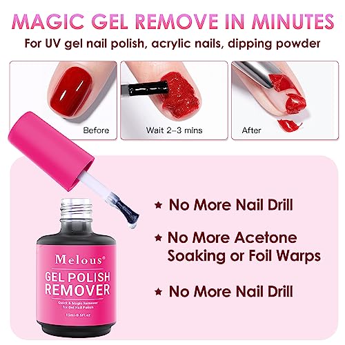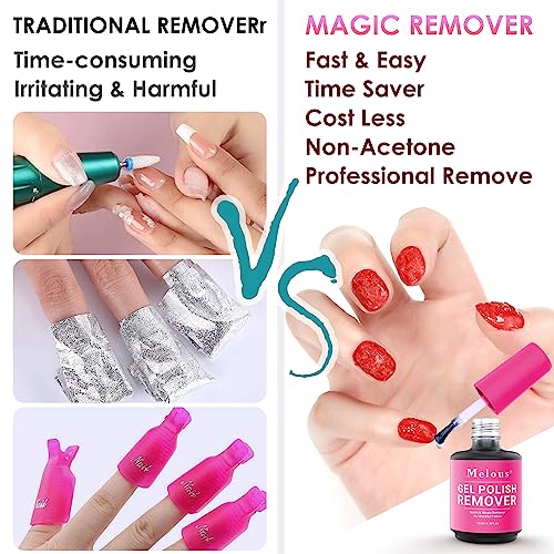 Multifunctional Use: Melous gel nail polish remover can remove nail polish, gel or UV oil, acrylic nails, artificial nails, glitter polish or nail glue, etc.
