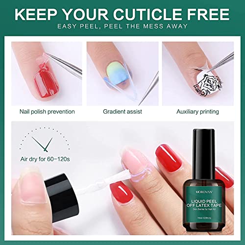 Specification: Morovan Nail Remover Kit Gel Nail Polish Remover Non-Acetone with Latex Tape Peel Off Liquid Professional Quick Easy Remove Soak-Off UV Gel Polish Color Paints Coat, 15ml/0.5fl.oz